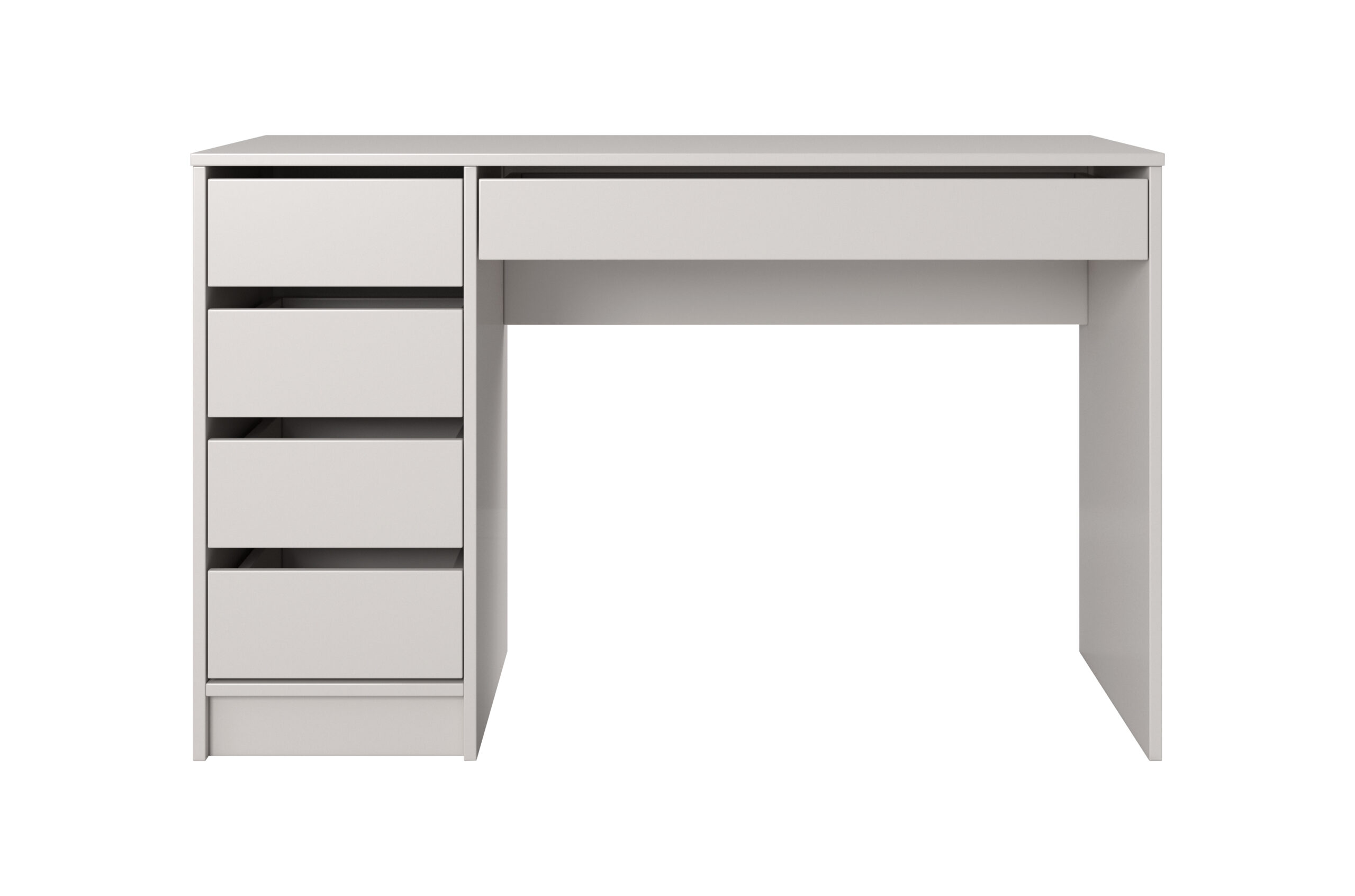 Biurko wykonane w całości z płyty laminowanej 16 mm odpornej na wilgoć i zarysowania w kolorze kaszmiurowym.