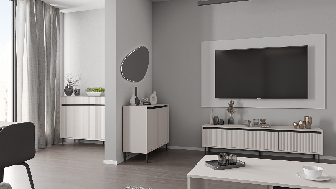Mebel oferuje przemyślaną przestrzeń do przechowywania, pozwalając na wygodne uporządkowanie odzieży, dokumentów lub akcesoriów codziennego użytku. Prosta bryła i subtelna stylistyka sprawiają, że komoda dobrze odnajdzie się w salonie, sypialni, przedpokoju czy pokoju młodzieżowym.