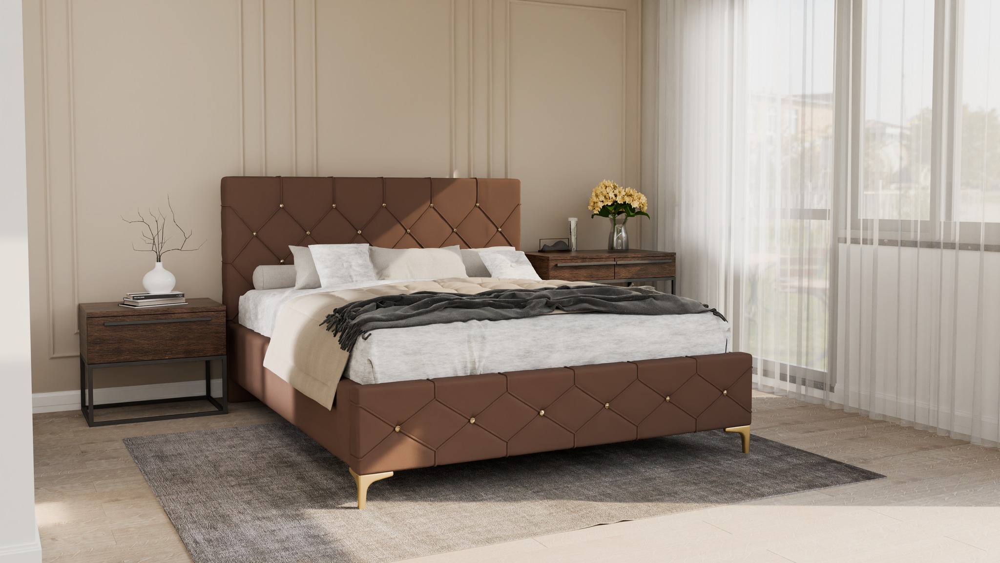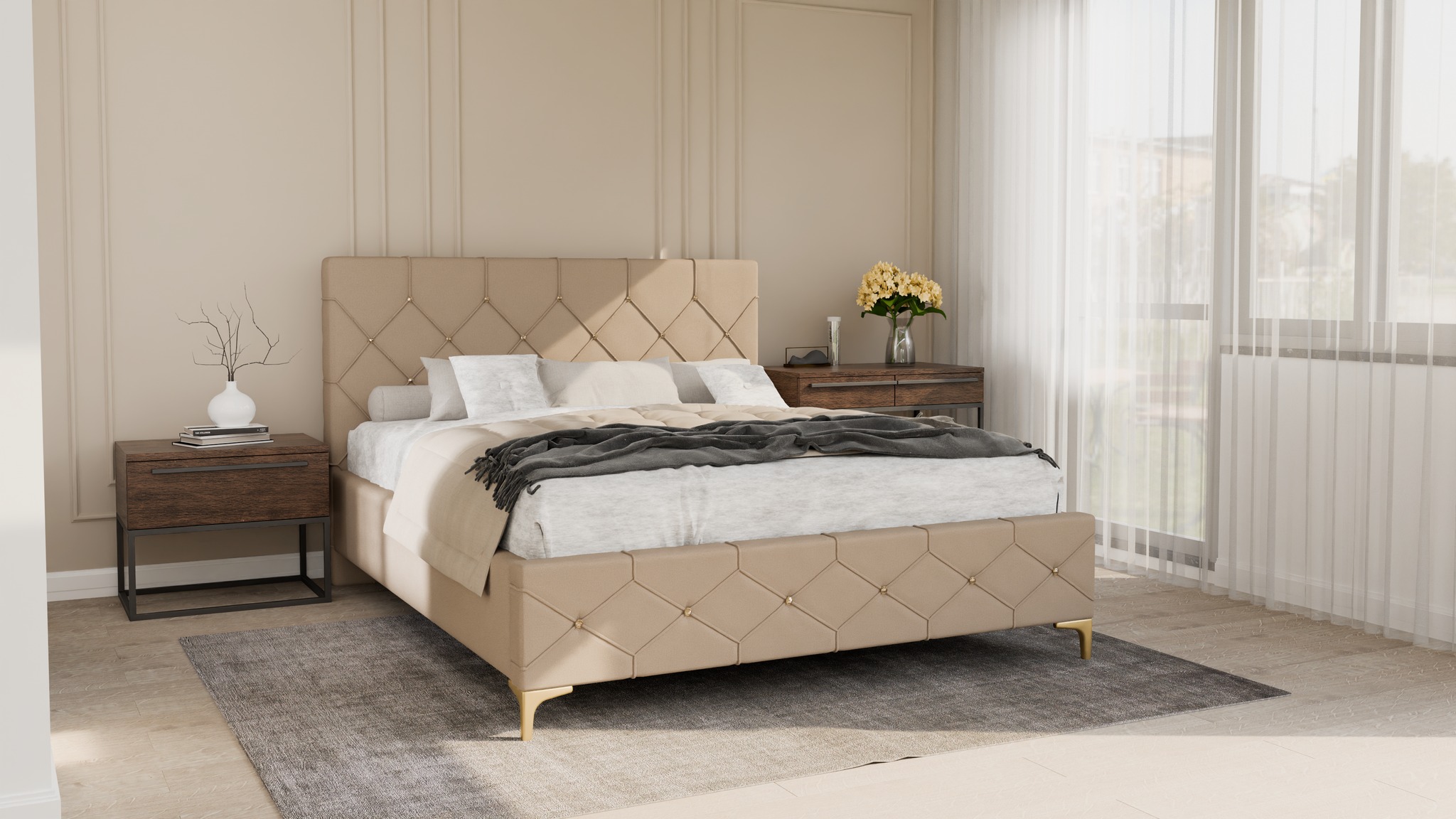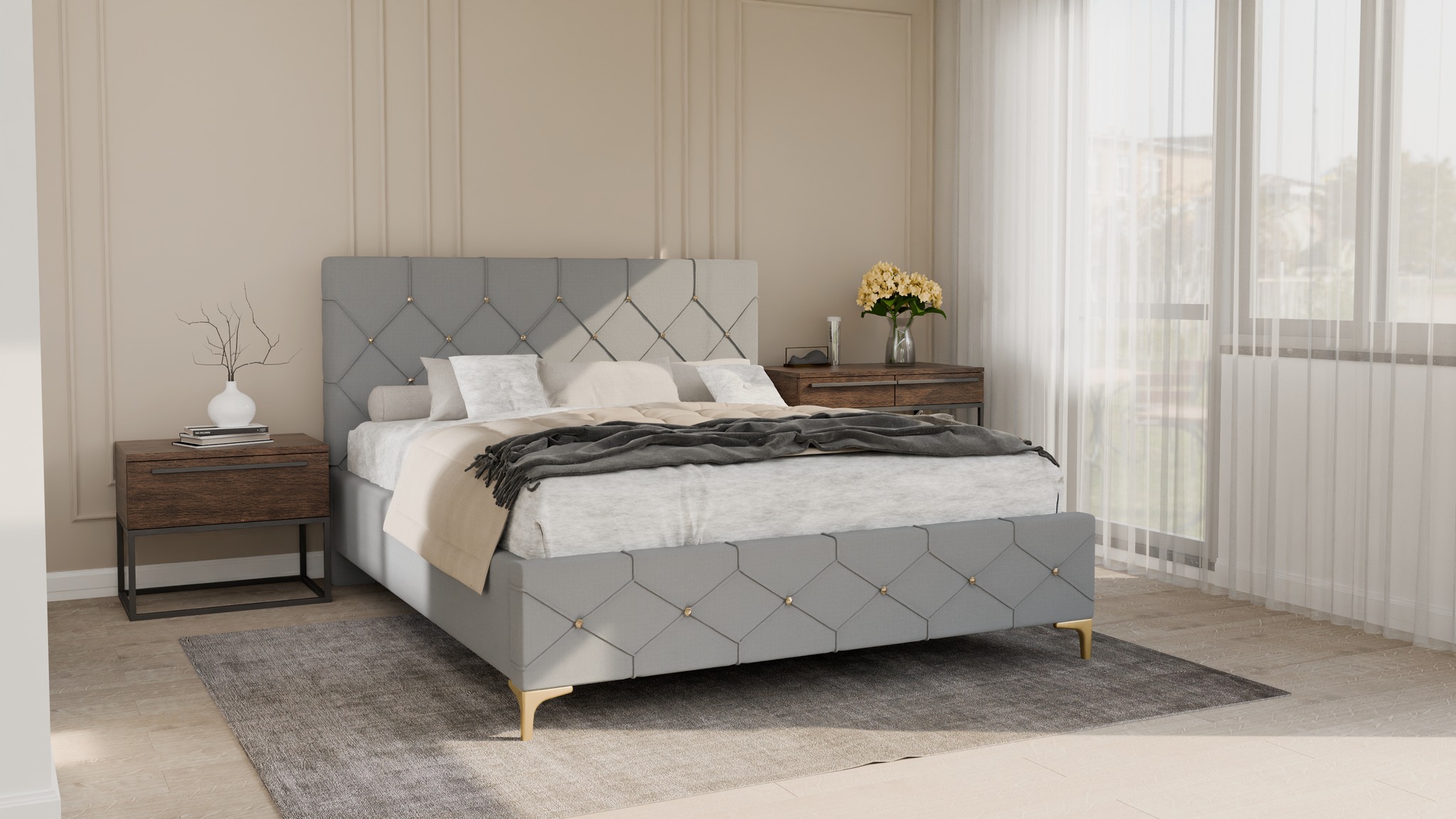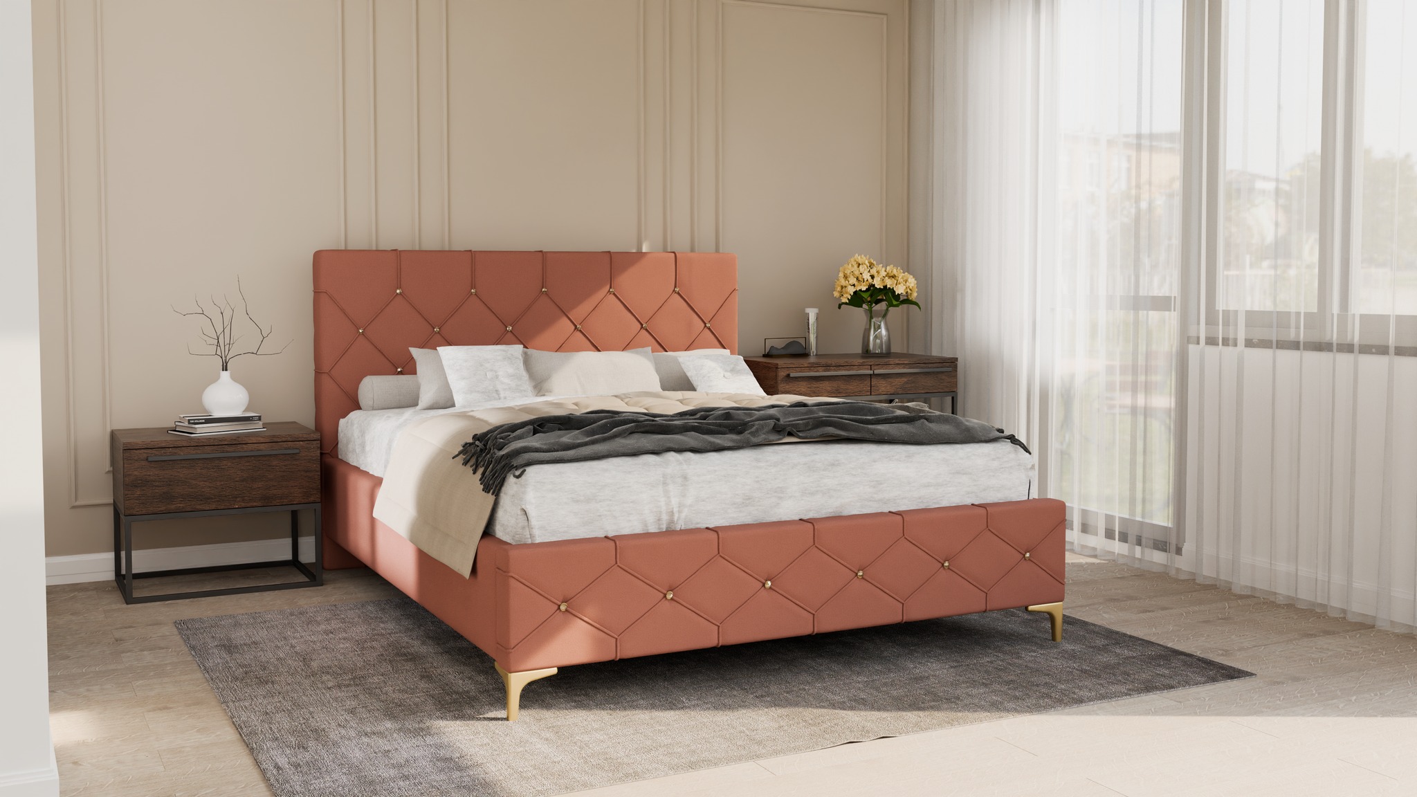 Łóżko dostępne jest w dowolnej kolorystyce – wybierz tkaninę, która najlepiej odpowiada Twoim preferencjom.