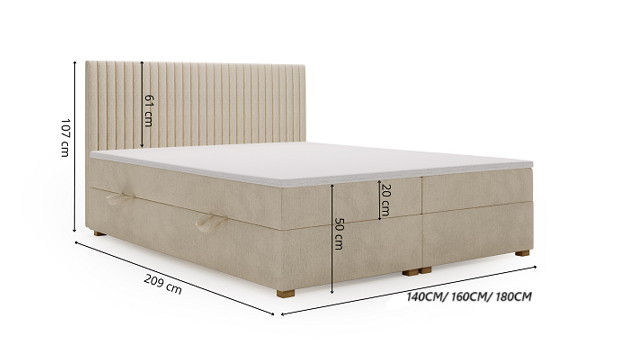 Powierzchnia spania: 140/160/180/x 200 ( szerokość łóżka do wyboru )
