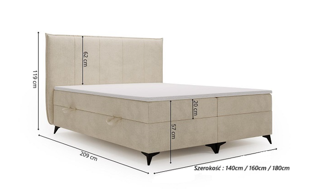 Powierzchnia spania: 140/160/180/x 200 ( szerokość łóżka do wyboru )