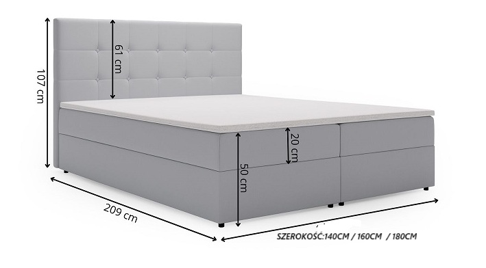 Powierzchnia spania: 140/160/180/x 200 ( szerokość łóżka do wyboru )