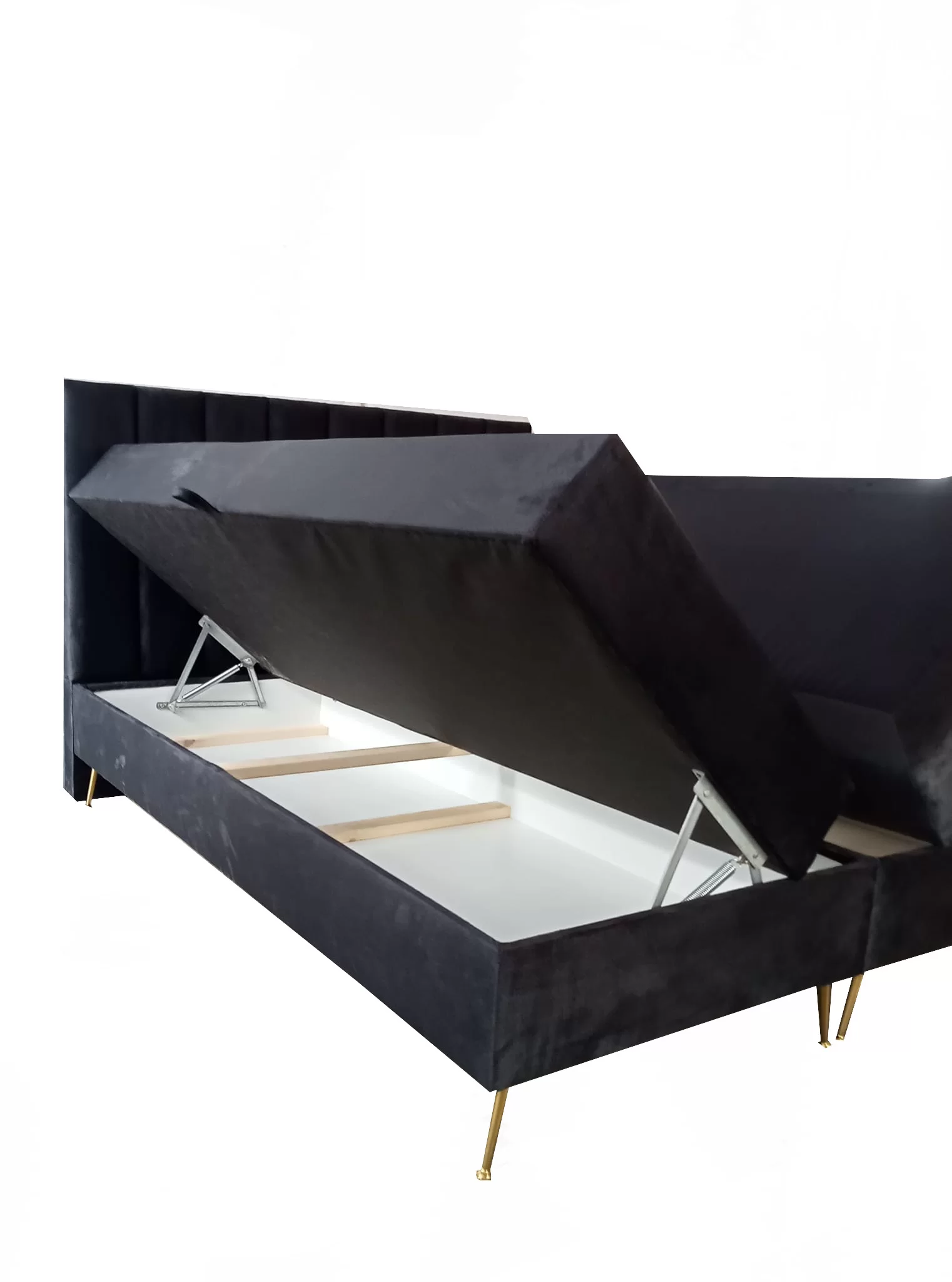 Łóżko posiada dwa pojemniki na pościel oraz wbudowany materac KIESZENIOWY POCKET: