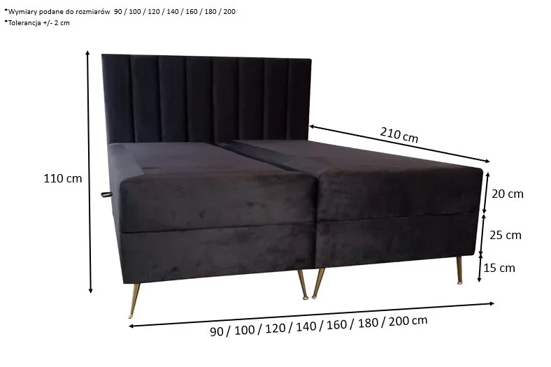 Powierzchnia spania: 120/140/160/180/200 x 200 ( szerokość łóżka do wyboru )