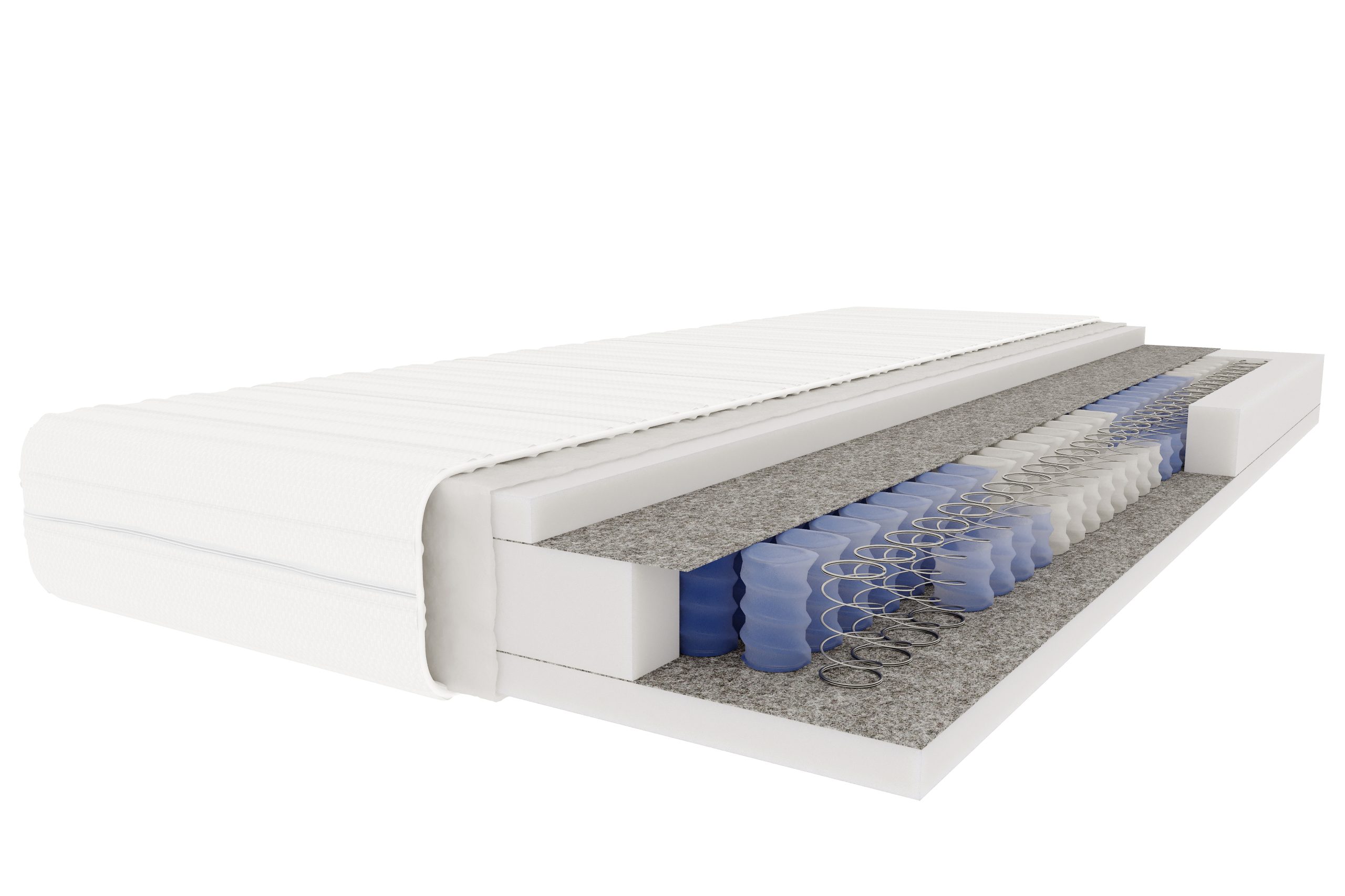 - Filc – usztywnia konstrukcję materaca, wpływając na jego wytrzymałość