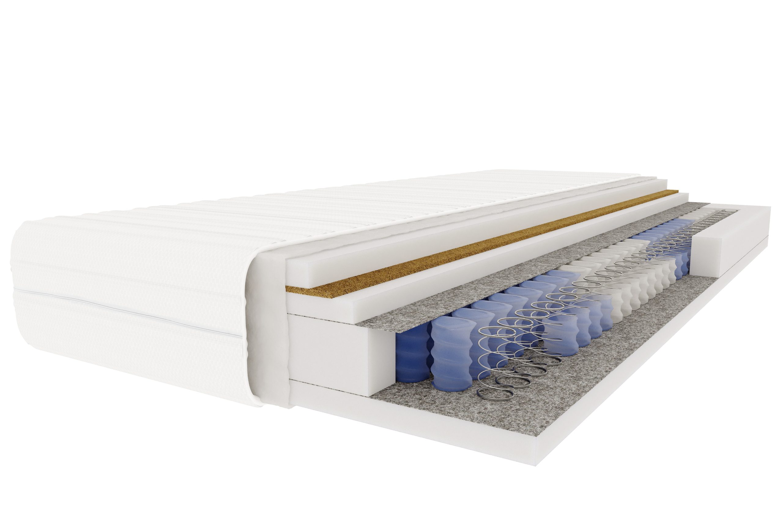 - Filc – usztywnia konstrukcję materaca, wpływając na jego wytrzymałość