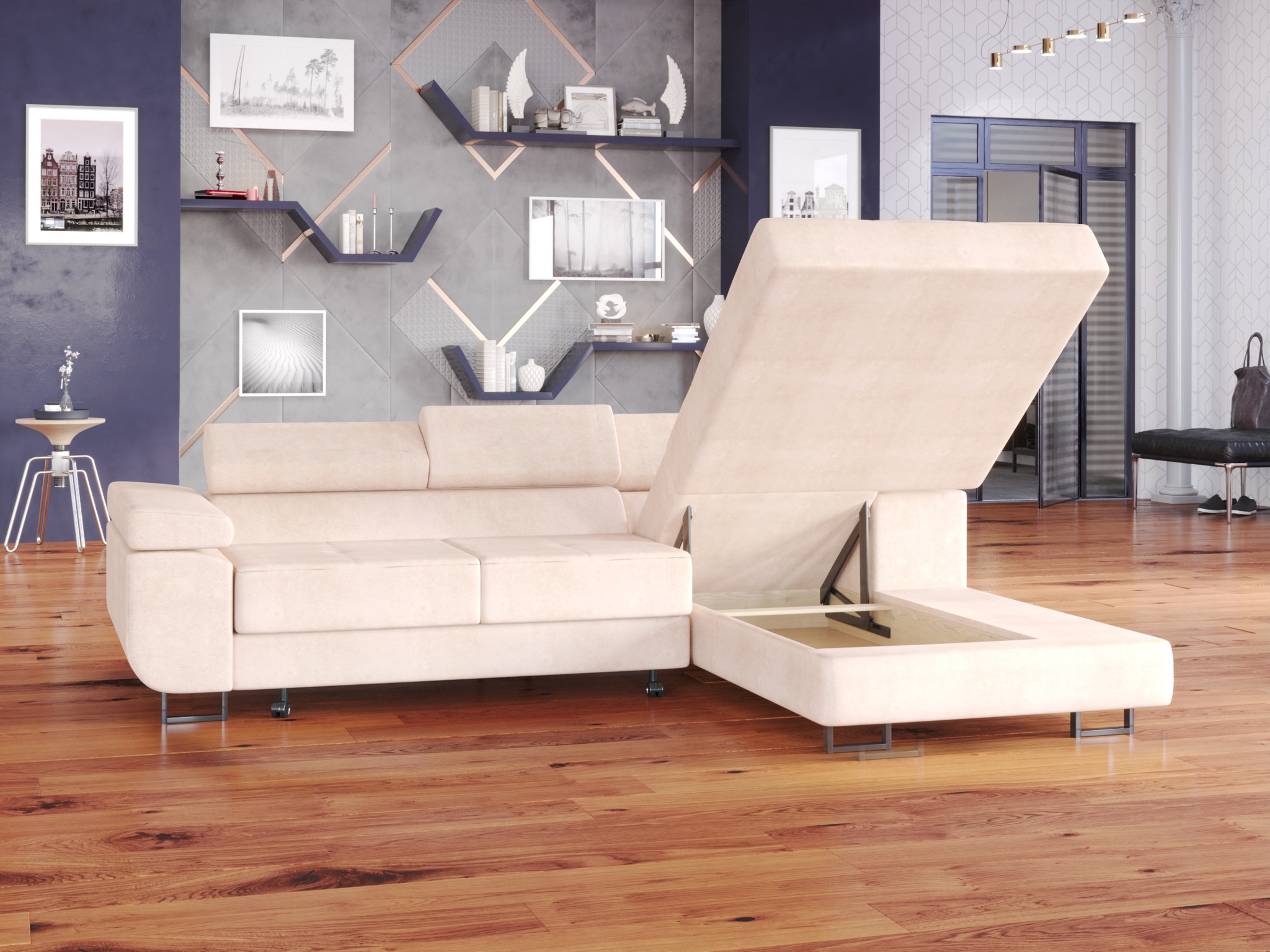 Dzięki dostępnej gamie kolorów dopasujesz narożnik do swojej aranżacji, dzięki materiałom, które zostały użyte do produkcji mebla – będziesz cieszył się trwałością produktu, natomiast dzięki funkcjom, które spełnia połączysz piękno z funkcjonalnością!