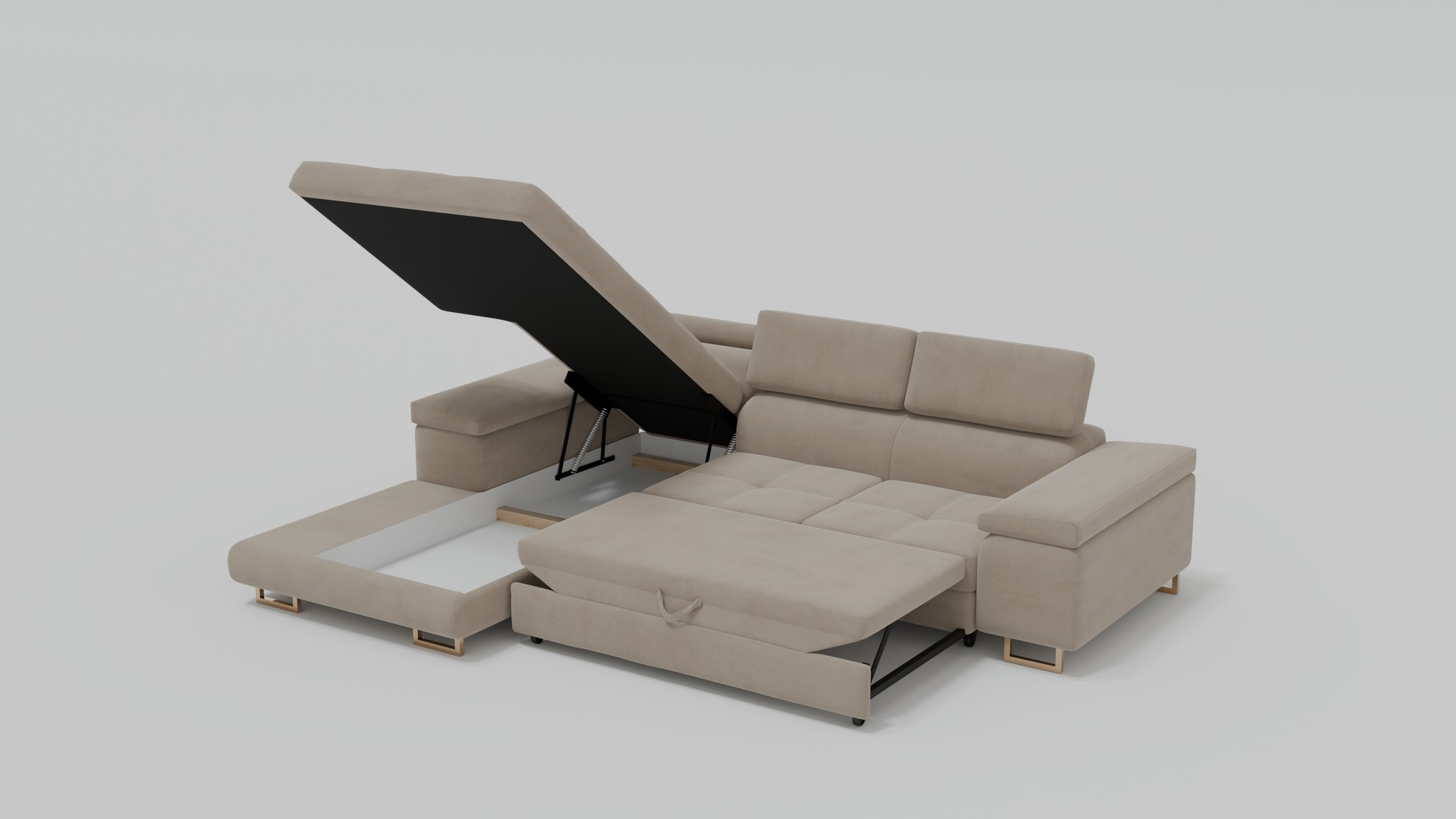 Funkcja spania – idealna, gdy potrzebujesz dodatkowego miejsca do wypoczynku (powierzchnia spania:125 × 215 cm)