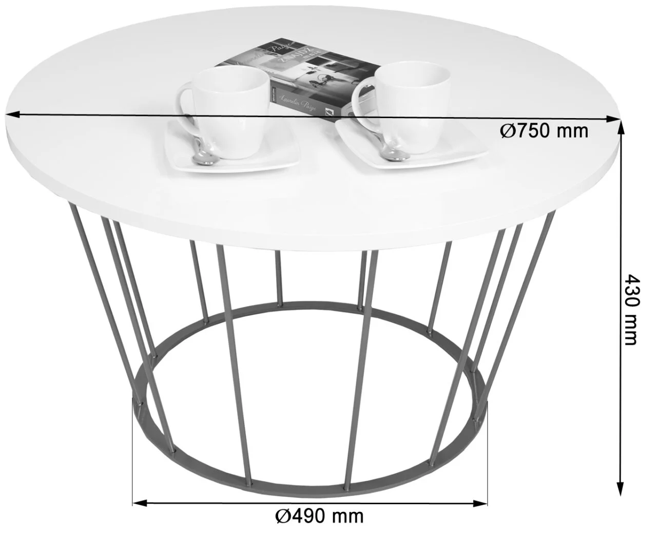 Stolik druciany z okrągłym blatem AROMATICA – CZARNY STELAŻ
