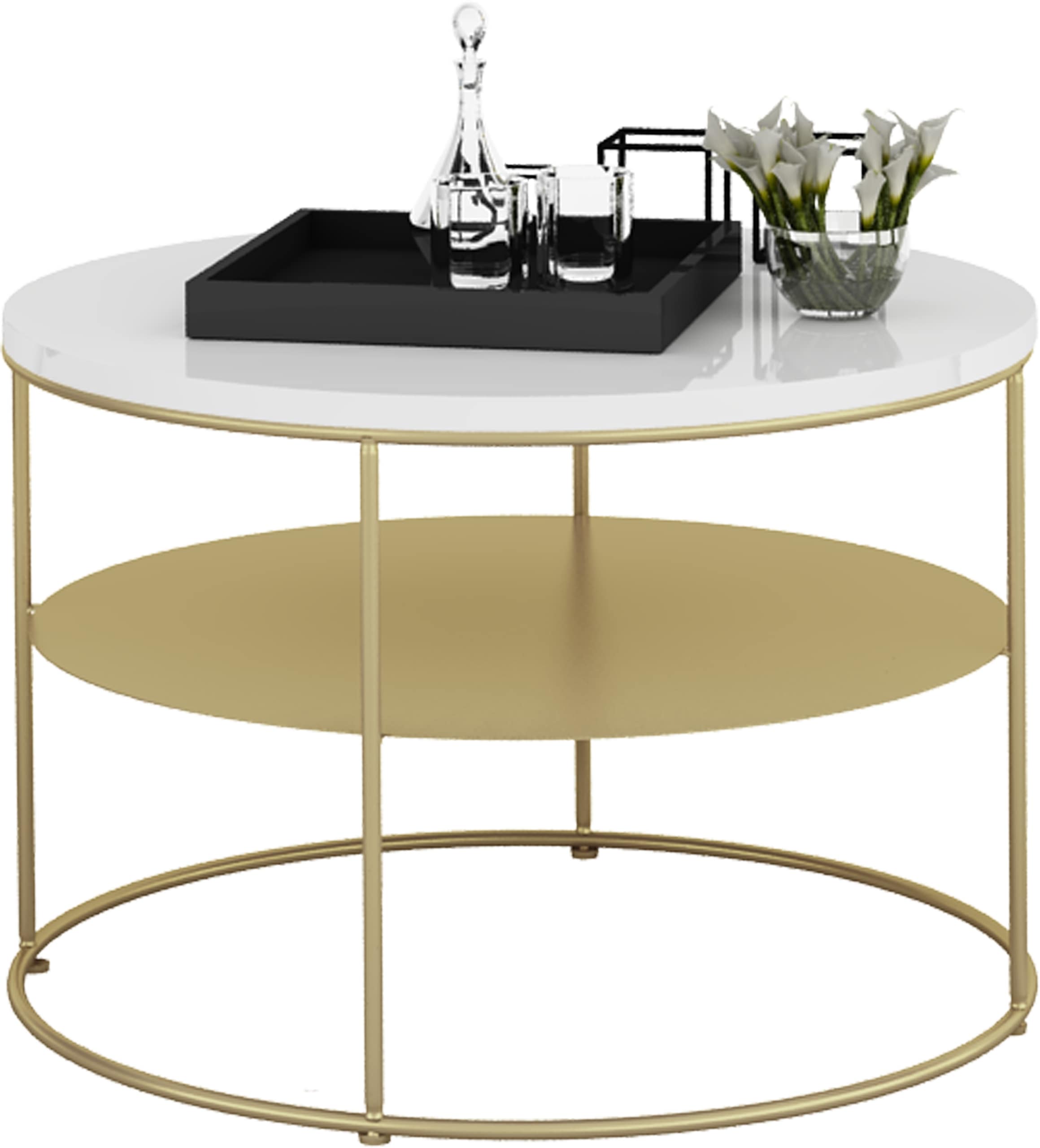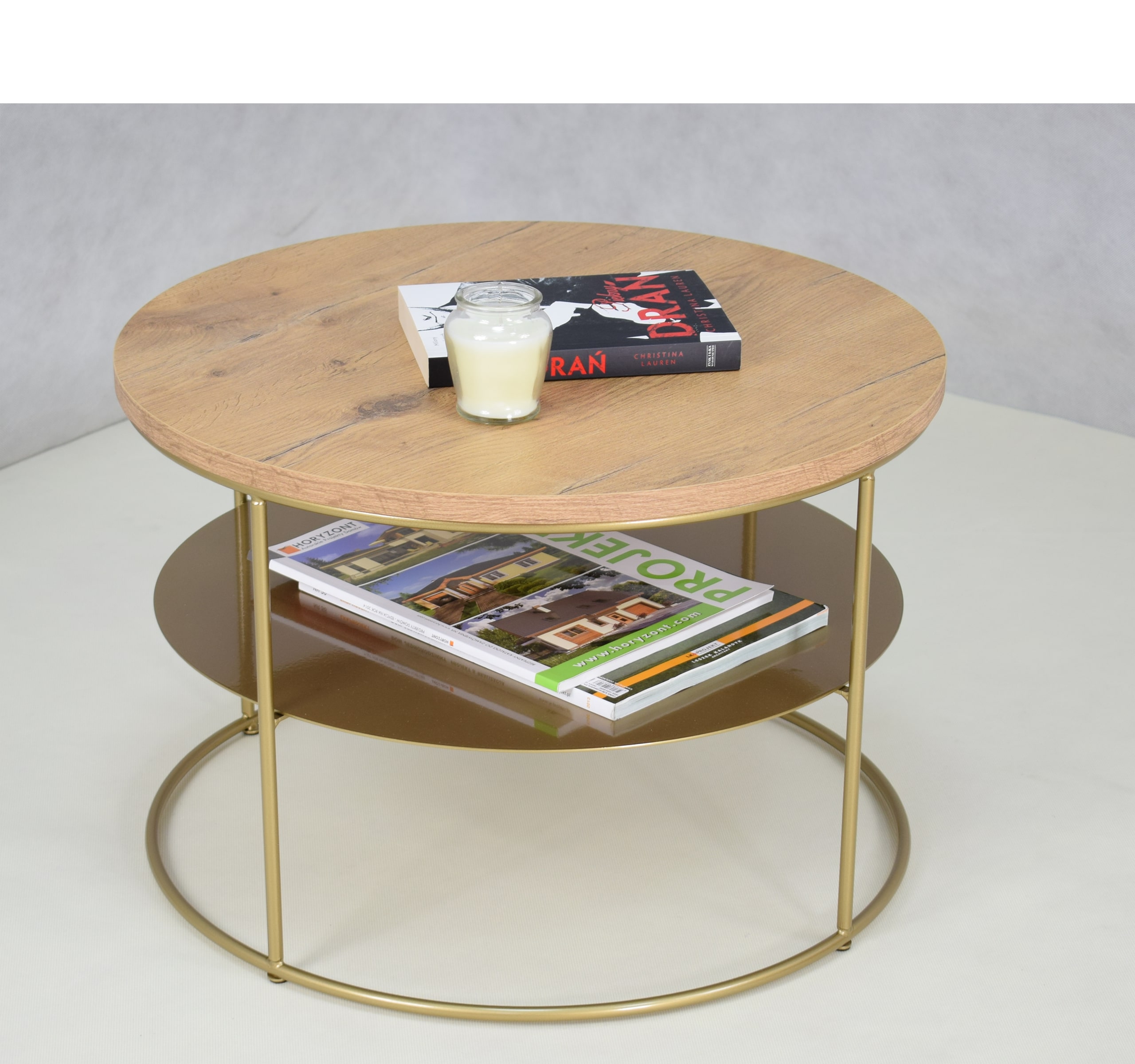 Stolik druciany z okrągłym blatem Espresso – ZŁOTY STELAŻ