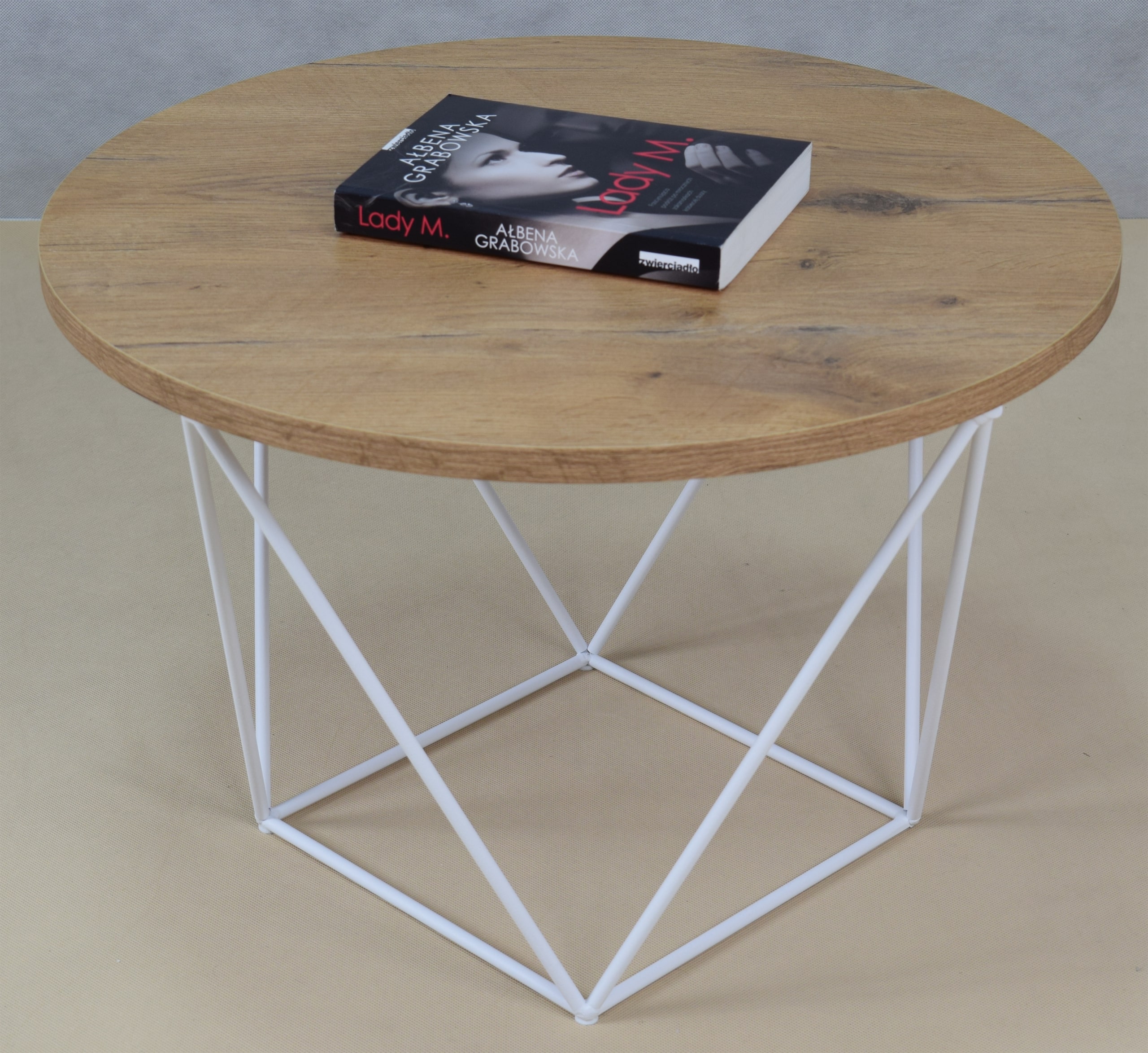 Stolik druciany z okrągłym blatem NOBEL – BIAŁY STELAŻ